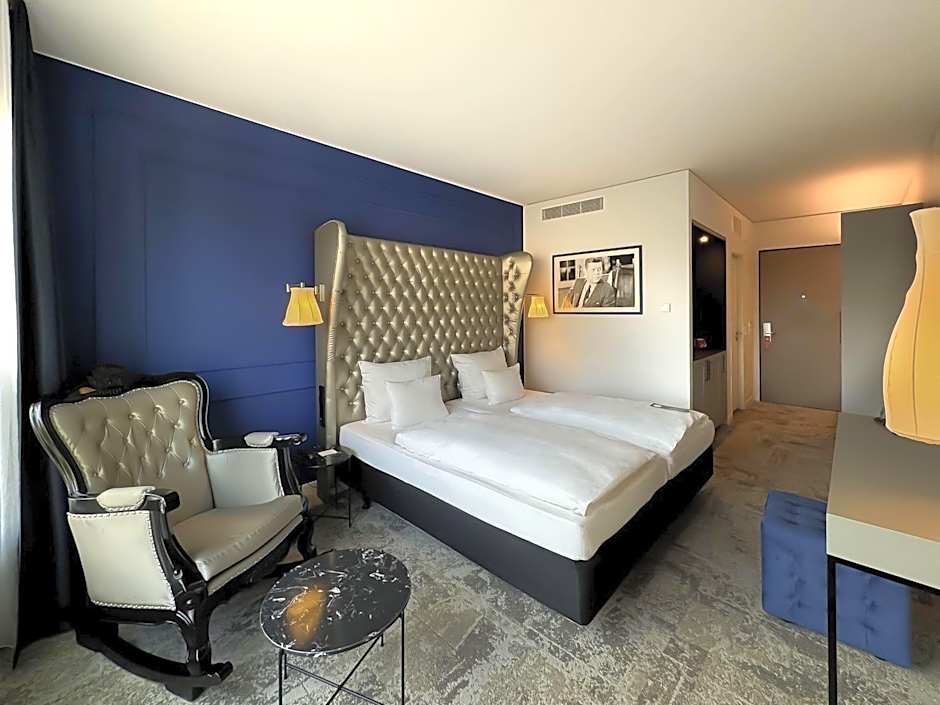 The double room provides air conditioning, a tea and coffee maker, as well as a private bathroom featuring a bath and a shower. The double room features carpeted floors, a seating area with a flat-screen TV, a wardrobe, a safe deposit box, as well as heating. The unit offers 2 beds.